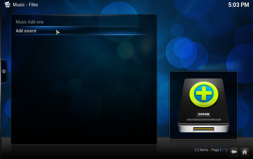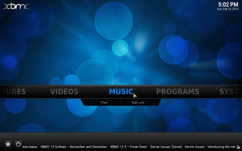 1. Select the 'Music' tab from the XBMC main menu: