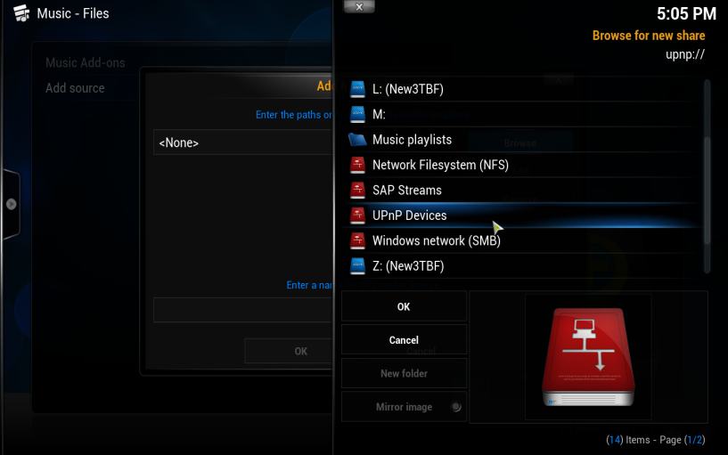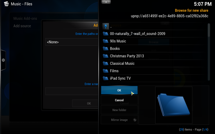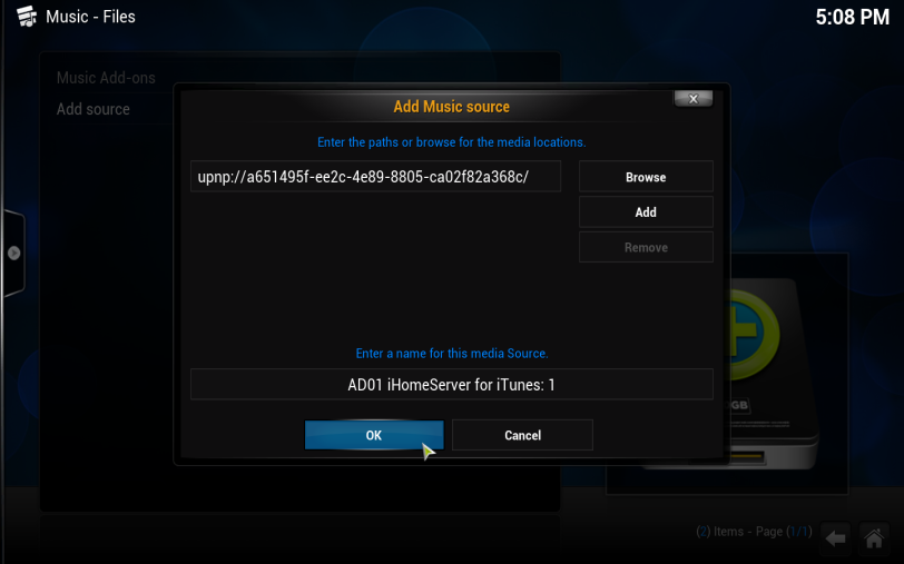 6. Click 'OK' to confirm your added music source: