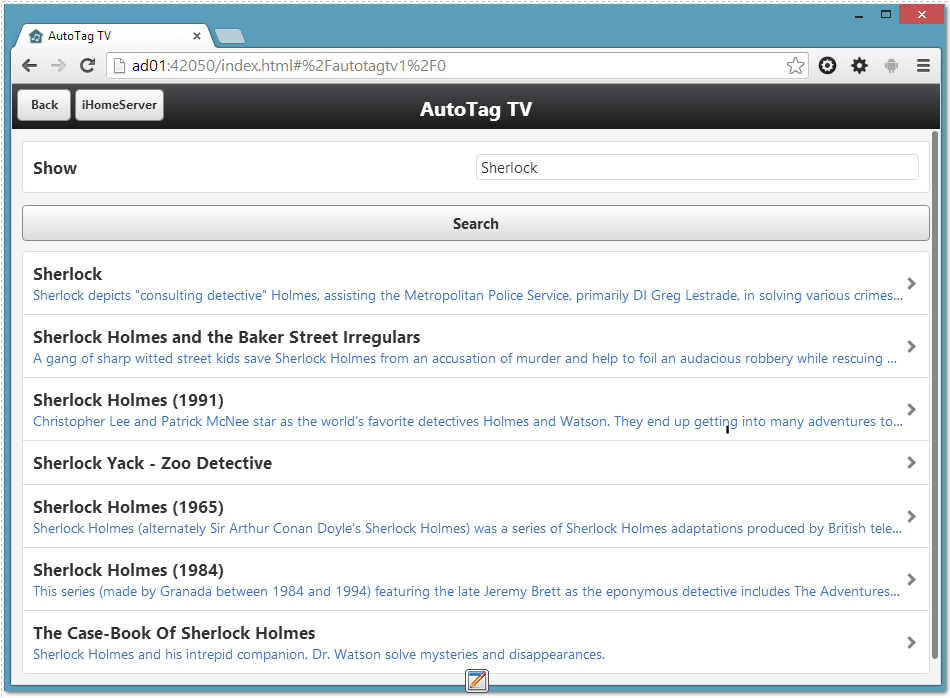 First enter the name of the show that the media tracks you have selected belong to, then click 'Search'.  In the example below, we have searched for the television show 'Sherlock':