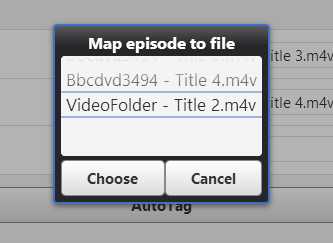 Tap the filename you want to map to the specific episode.  Repeat this step for as many tracks as you want to AutoTag.  Note that you do not need to select a file against each episode - iHomeServer will only tag episodes which you have mapped to a file and ignore the rest