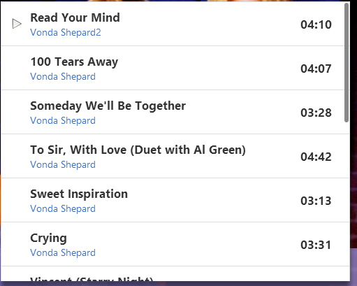 The Track List shows the currently queud tracks.  To select another track to play simply click/tap it's name.