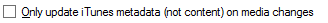 If iHomeServer detects a file has changed (due to file size or file dates), it can employ one of two tactics to update iTunes; it can either tell iTunes to fully refresh the file, or it can tell iTunes to update metadata only.  The latter is faster than the former.  Therefore, by default, iHomeServer will only update the metadata of a file (including artwork) if it detects media changes.  There should be no reason to change this default.