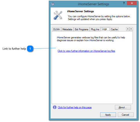 Clicking this link will take you to the help topic on iHomeServer Log Files